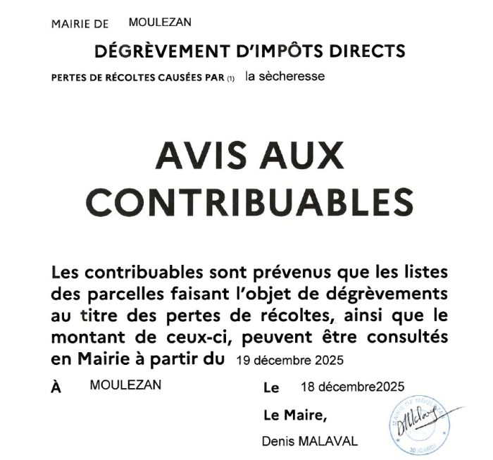 la commune a été reconnue sinistrée au titre des calamités agricoles à la suite de la sécheresse de 2025