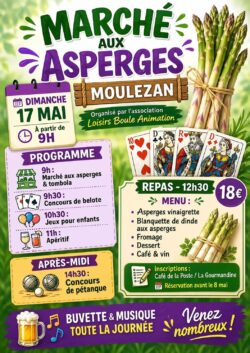 Prochains Évènements Marché aux asperges le dimanche 17 mai 2026 « Tous les Évènements 17 mai Détails Date : 17 mai + Google Agenda+ Exporter vers iCal